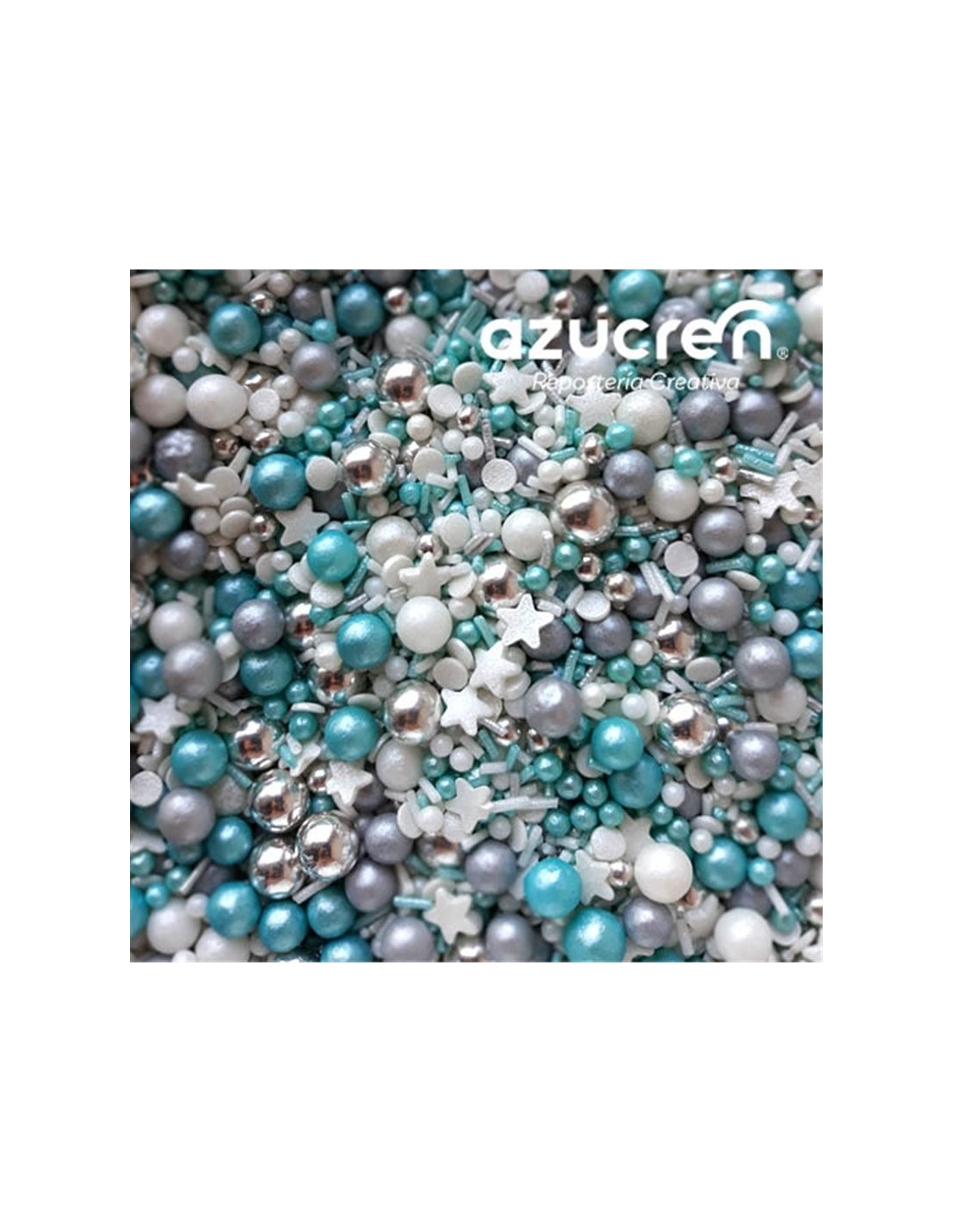 Sprinkles Artico (Perlas 8 mm plata metalizada. perlas 7 mm turquesas, blancas y plata. perlas 4 mmplata metalizada, blancas y turquesas. fideos blancos,Decoraciones de azúcar. Perfectas para decorar todo tipo de elaboraciones, desde galletas, cupcakes o cake pops, hasta tartas, pasteles, ...