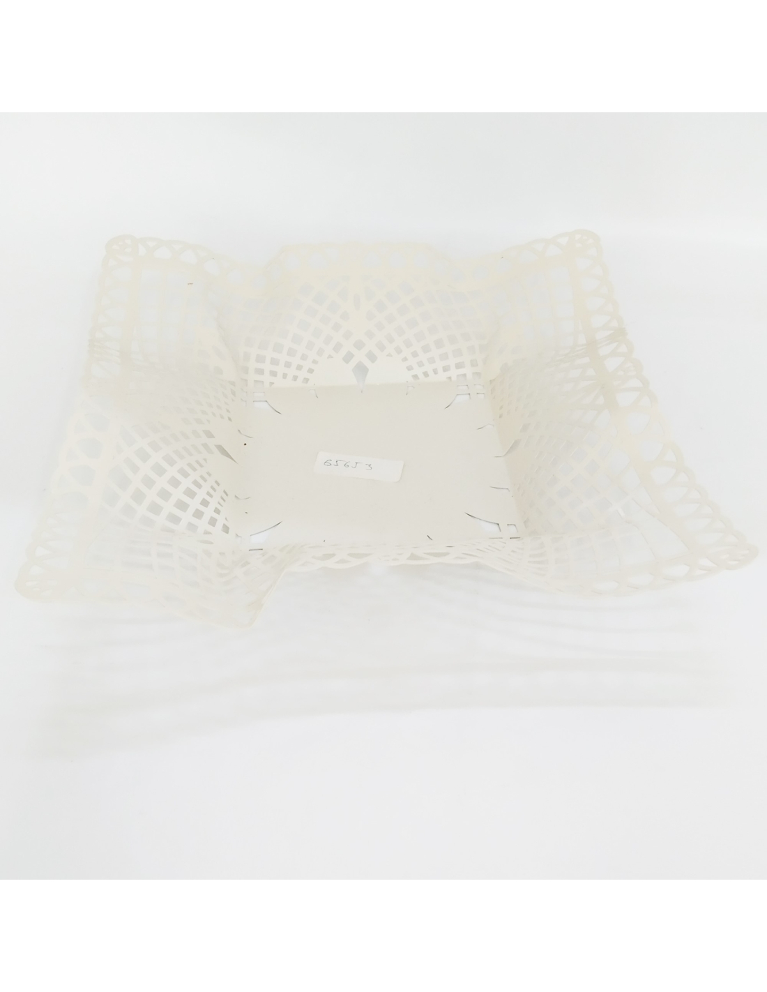 Bandeja de hojalata imitando a puntilla, en tono beige. Bonita para centro de mesa, frutero, etc.. Medidas 24x24