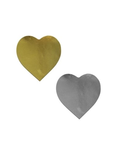 disco de cartón oro y plata en forma de corazón para poner en la base de tus pasteles