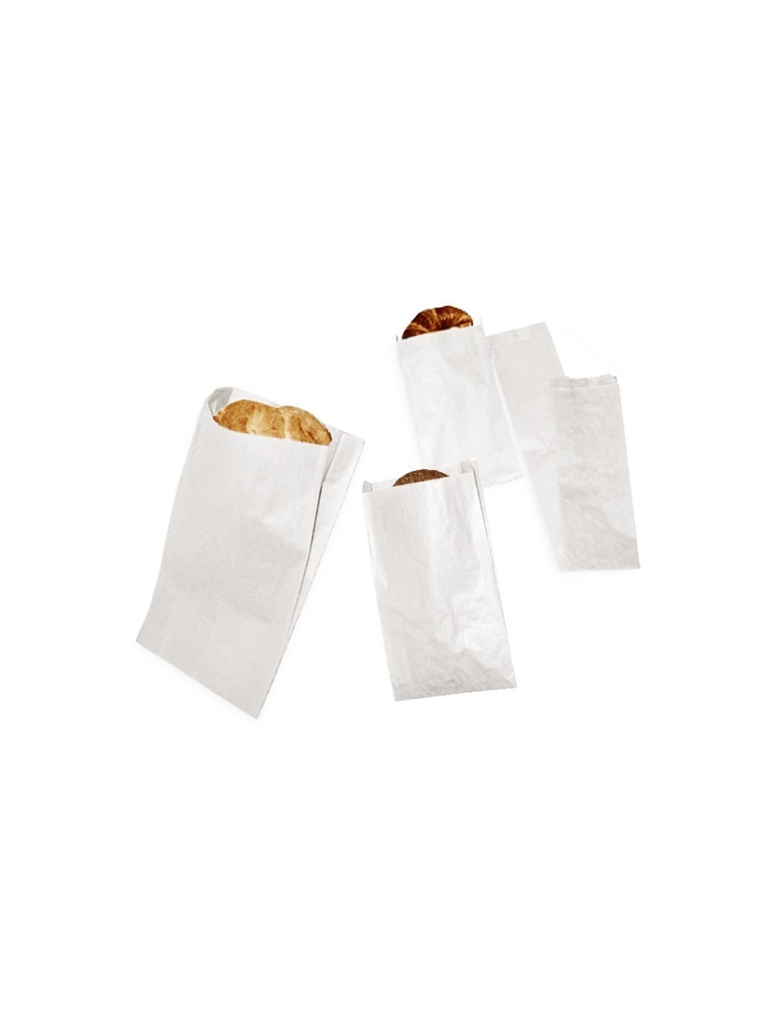 Bolsa de papel lisa, con medidas 18 + 7 x 35 cm con fuelle lateral. Empleadas en establecimientos como hornos o panaderías para piezas de bollería. papel blancocajas de 1000 unidades