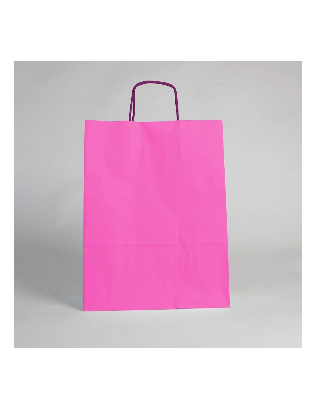 BOLSA PAPEL ASA TORSIONADA FUCSIA 18+8x24 C/500