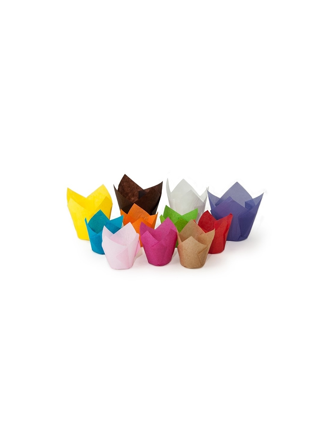 Cápsulas para hornear tus muffins. Colores surtidos.ROJO, NARANJA, AMARILLO, VERDE, LILA.Paquete 150 und.PapelTamaño 5cm base