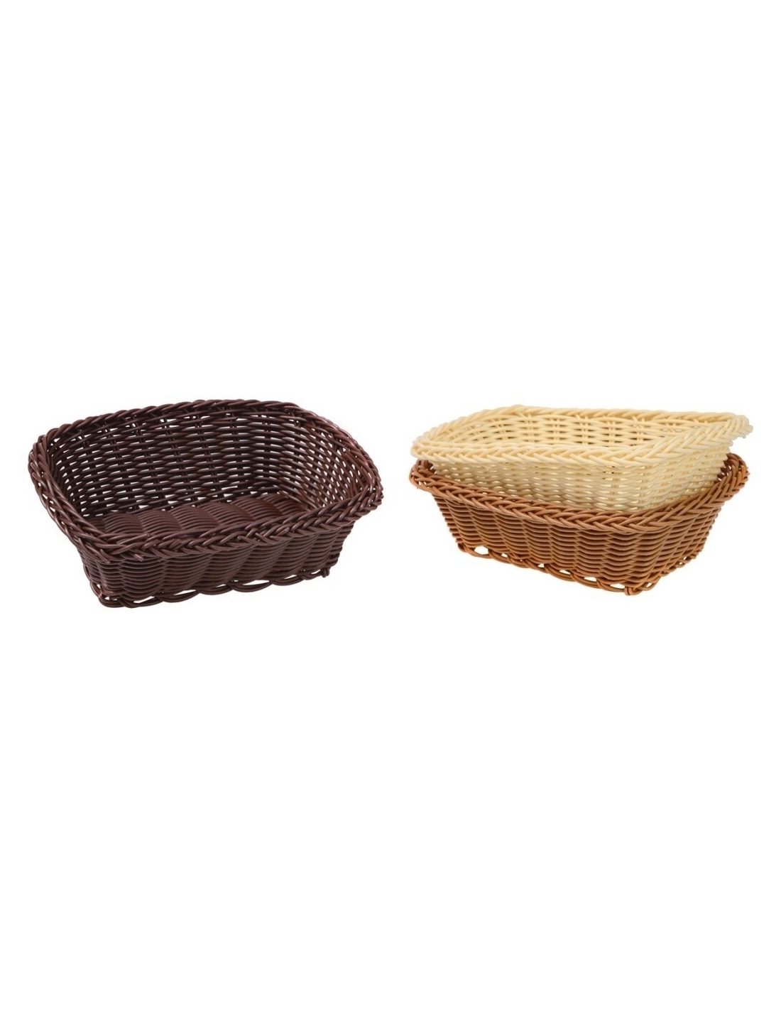 Cestita de plástico rectangularEstán disponible en tres colores: marrón, miel y natural 18x13x6cm