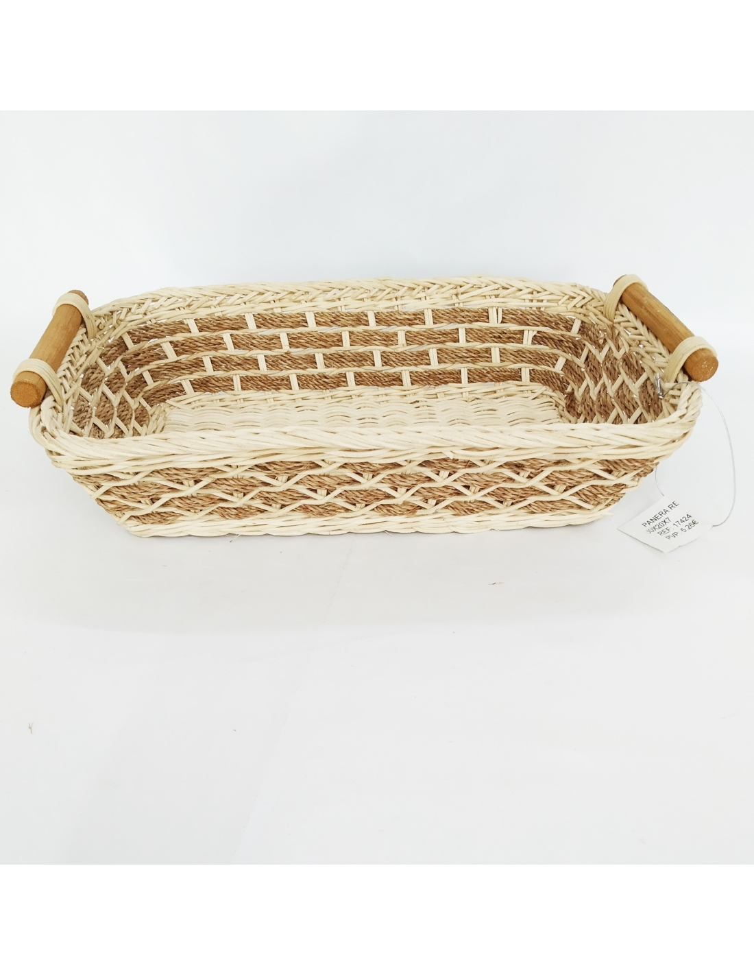 Panera pequeña hecha toda de mimbre y asas de madera. Perfecta para cualquier rincón de la cocina. Medidas 30x20x7