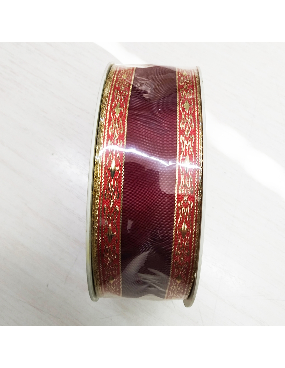 CINTA TELA BURDEOS FILO ROJO Y ORO REF.4029 4CM X 20M