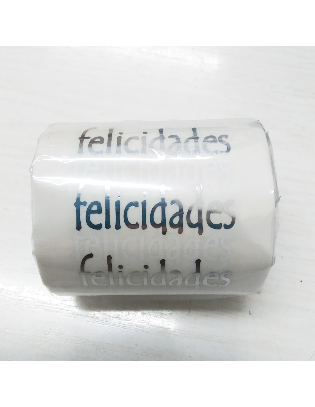 ETIQUETA ADHESIVA FELICIDADES PLATA 500UND.