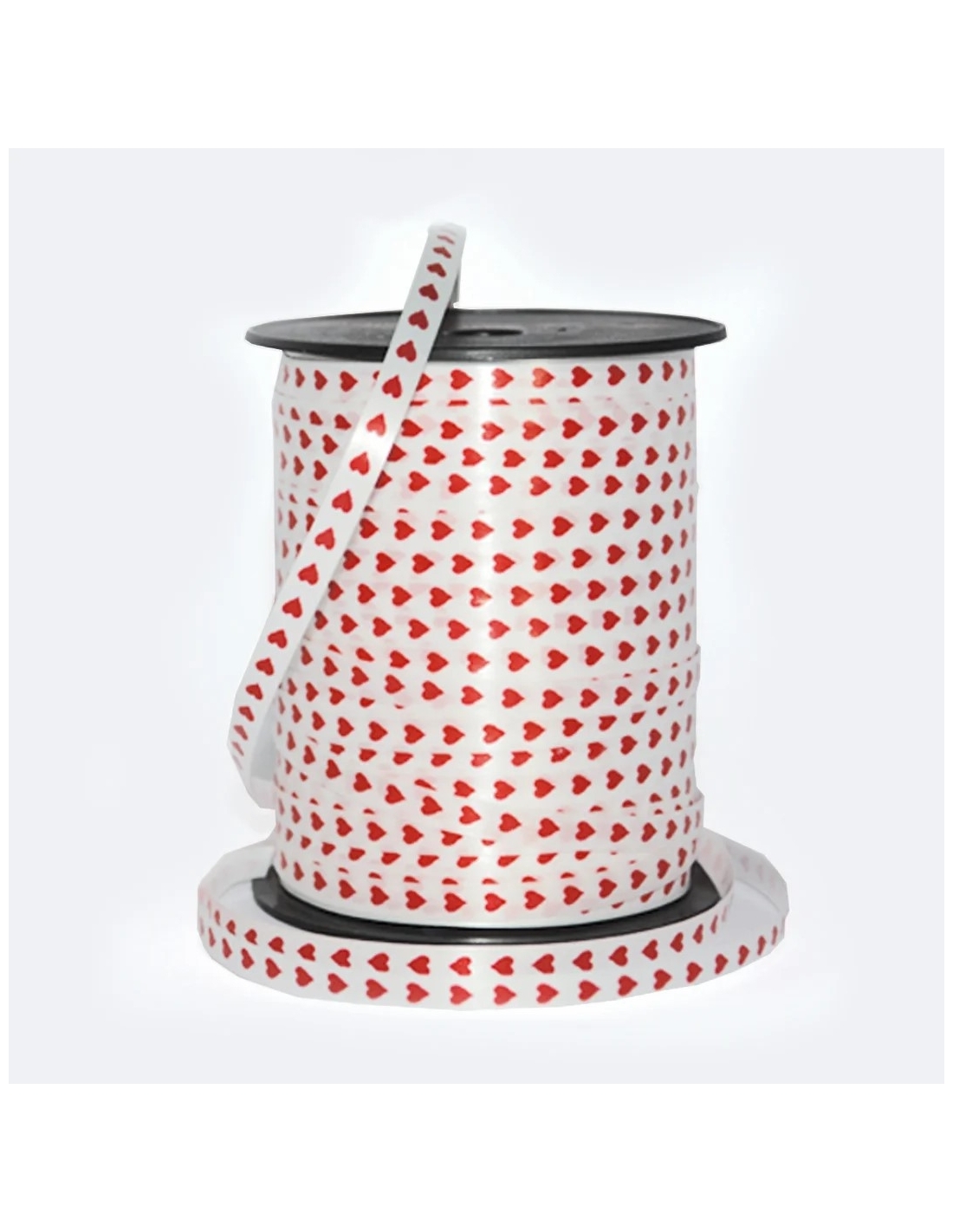 Material: Cinta Decorativa para Regalos de polipropileno impresa.Medidas: 7 mm x 250 metros.La Cinta tiene un diseño de pequeños Corazones. Este diseño resulta adecuado para utlilizarla en regalos en el día de San Valentín y otros regalos para seres queridos. Los corazones son de color rojo fuerte sobre un fondo blanco.