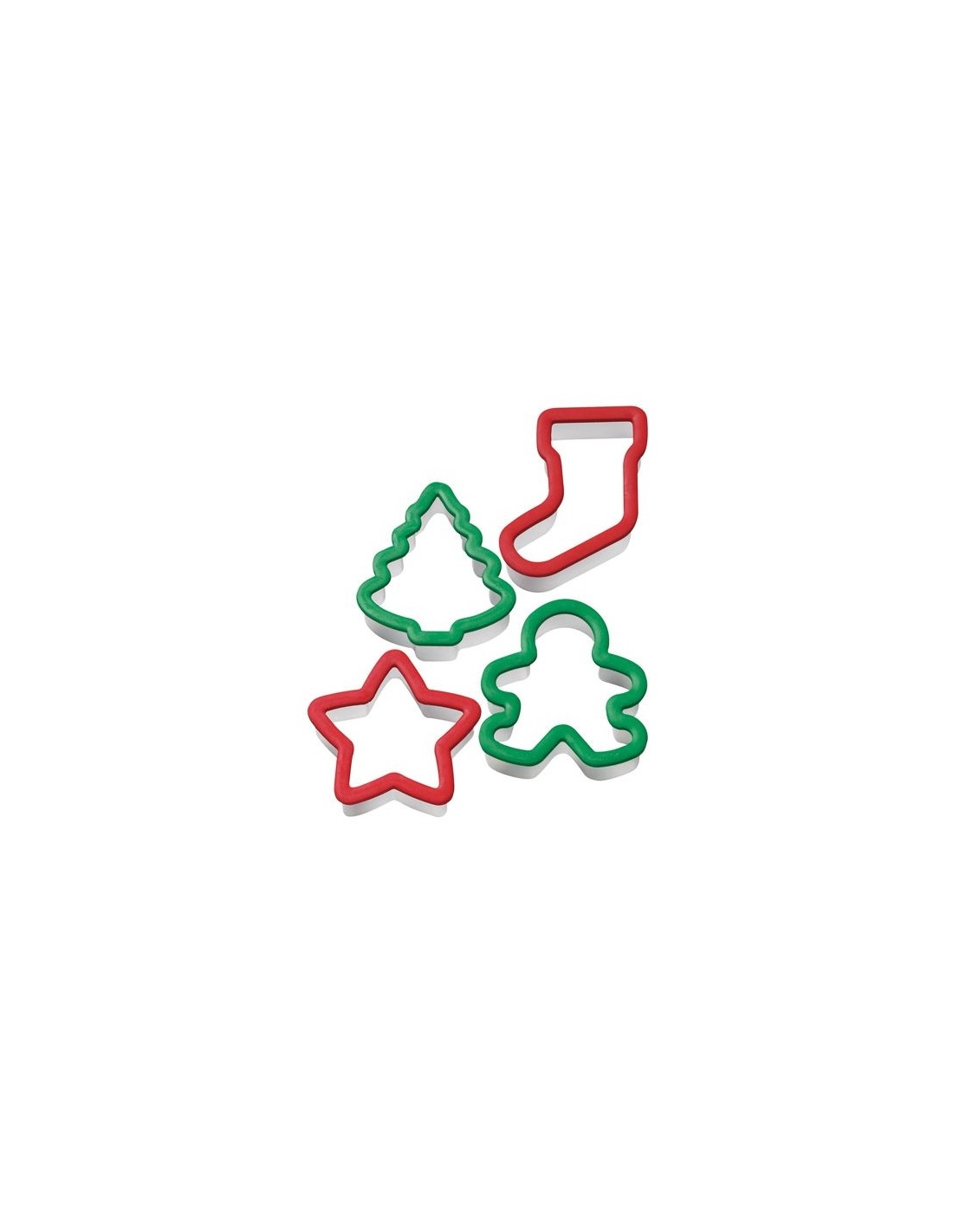 Nunca ha sido tan fácil hacer galletas y unirlas fácilmente a una taza de chocolate o vaso de leche. Es perfecto para tus fiestas navideñas. Este set de cortadores de Wilton contiene un chico de jengibre, renos, bastón de caramelo y un cortador de sombrero de Navidad.Tamaño aprox. por cortador. 6,3 a 9,5 cm.Los cortadores no son adecuados para el lavavajillas.Contenido: 4 cortadores