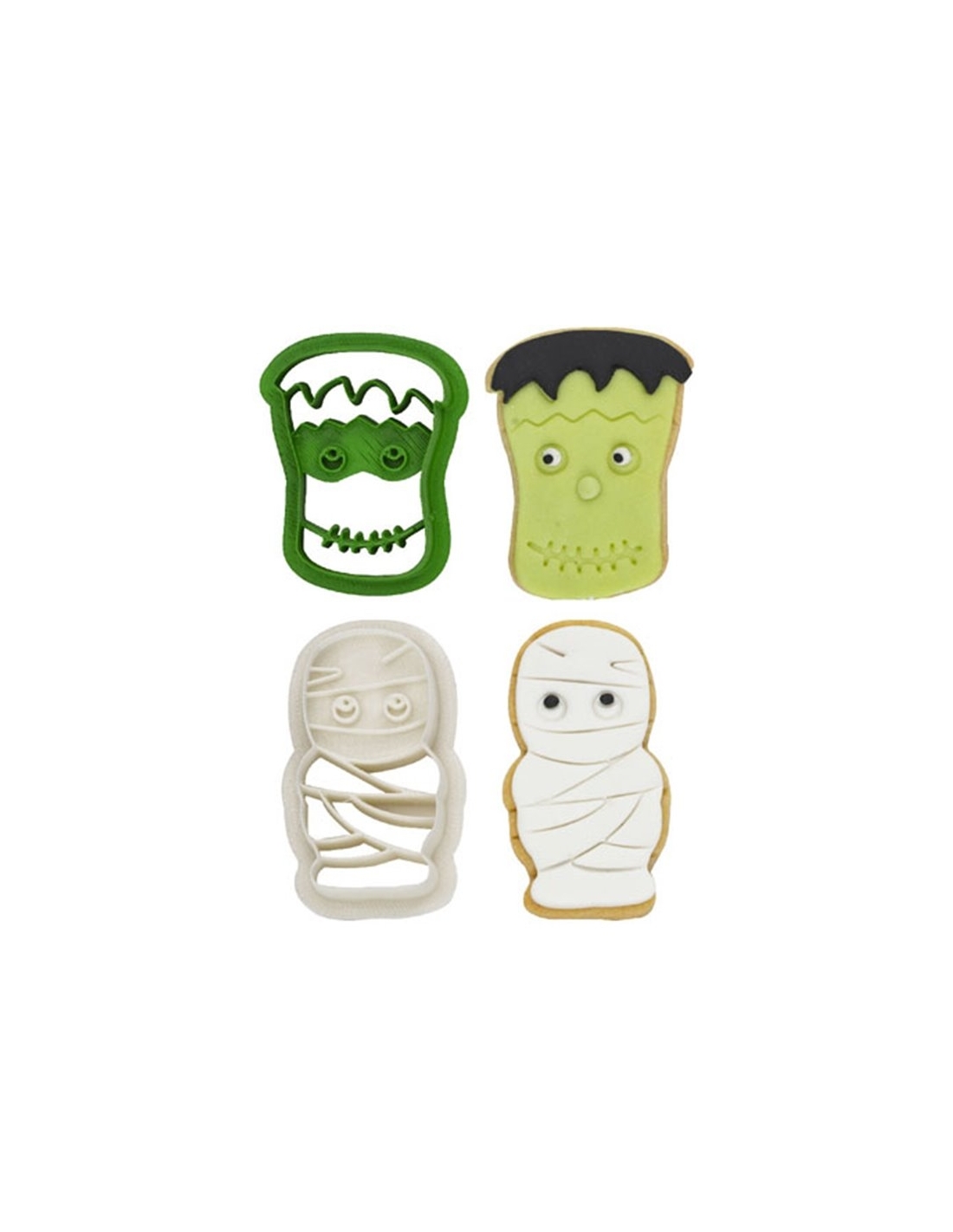 Set de 2 cortadores de plástico con forma de Momia y Frankestein