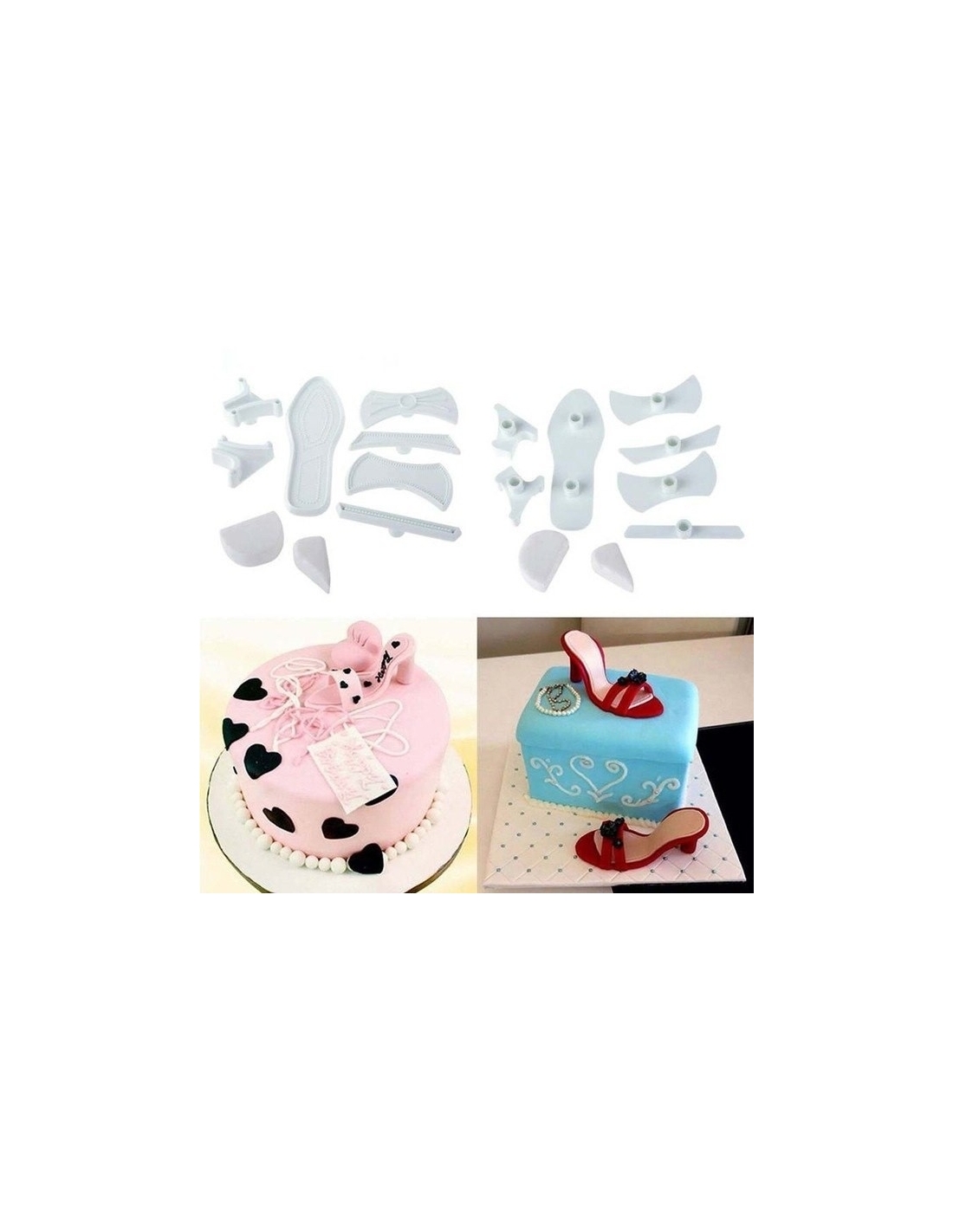 Cree increíbles zapatos para mujer con este juego de 9 cortadores fáciles de usar Simplemente coloque los cortadores en su rodillo JEM, engrase los cortadores con la base de pétalos JEM, coloque su pasta sobre la parte superior y enrolle su rodillo sobre la parte posterior de los cortadores para lograr una superficie limpia, limpiar los recortes. Los zapatos están divididos en varias partes diferentes que simplemente encajan para crear zapatos de tacón alto 3D eficaces. Medidas aproximadas del zapato acabado 94 x 40 mm. (El Juego de Tops para Zapatos JEM también puede ser usado junto con este juego para crear diferentes estilos de zapatos)