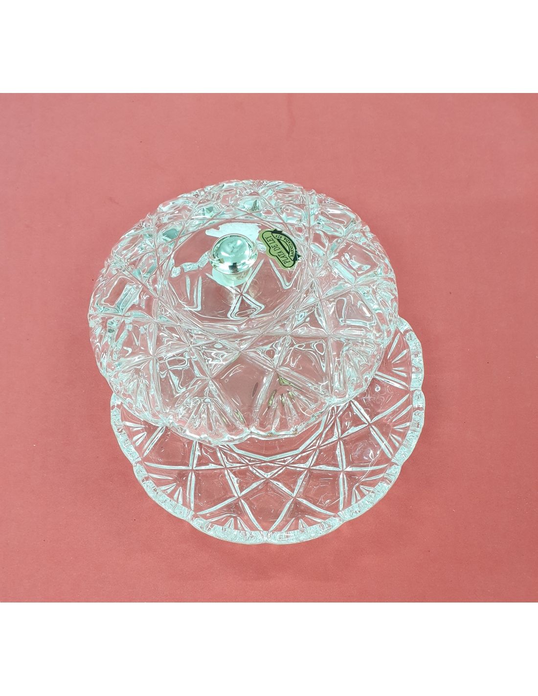 bombonera de cristal con tapa y agarre de platamedida 16x8,5