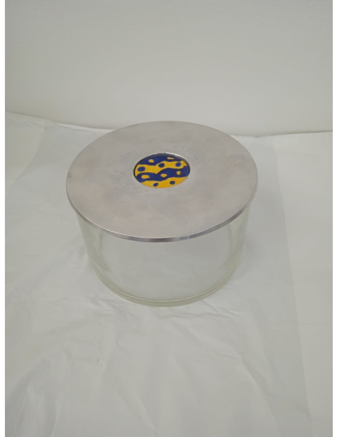 BOMBONERA CRISTAL TAPA ACERO AZUL/AMARILLO