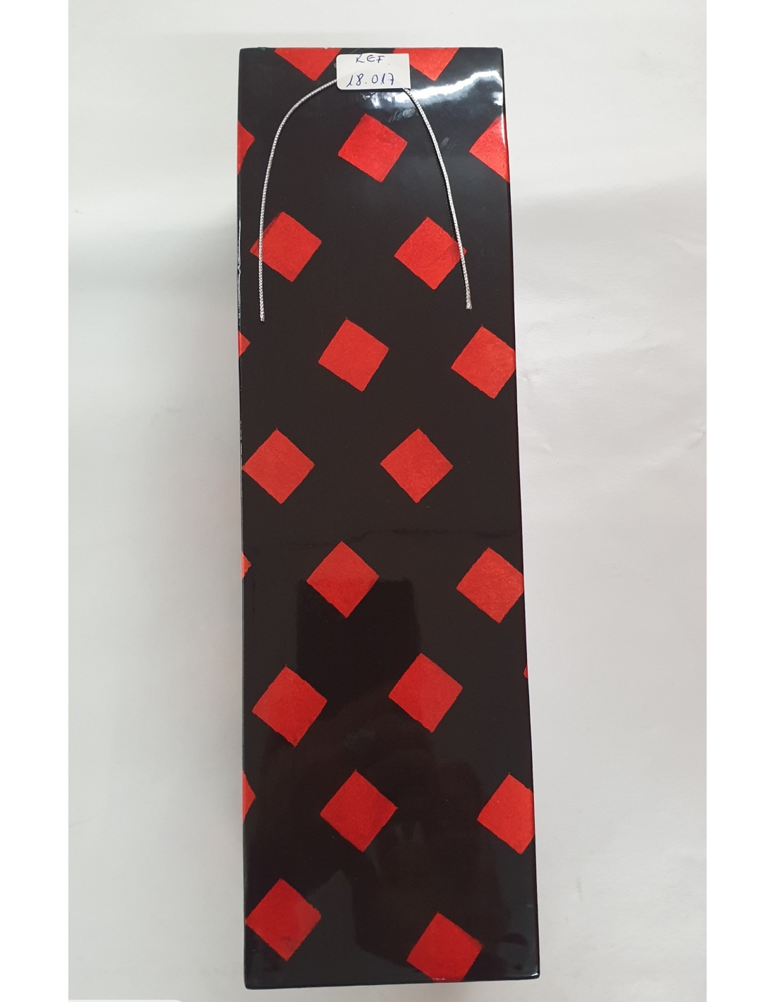 JARRON CUADRADO NEGRO CON ROMBOS ROJOS