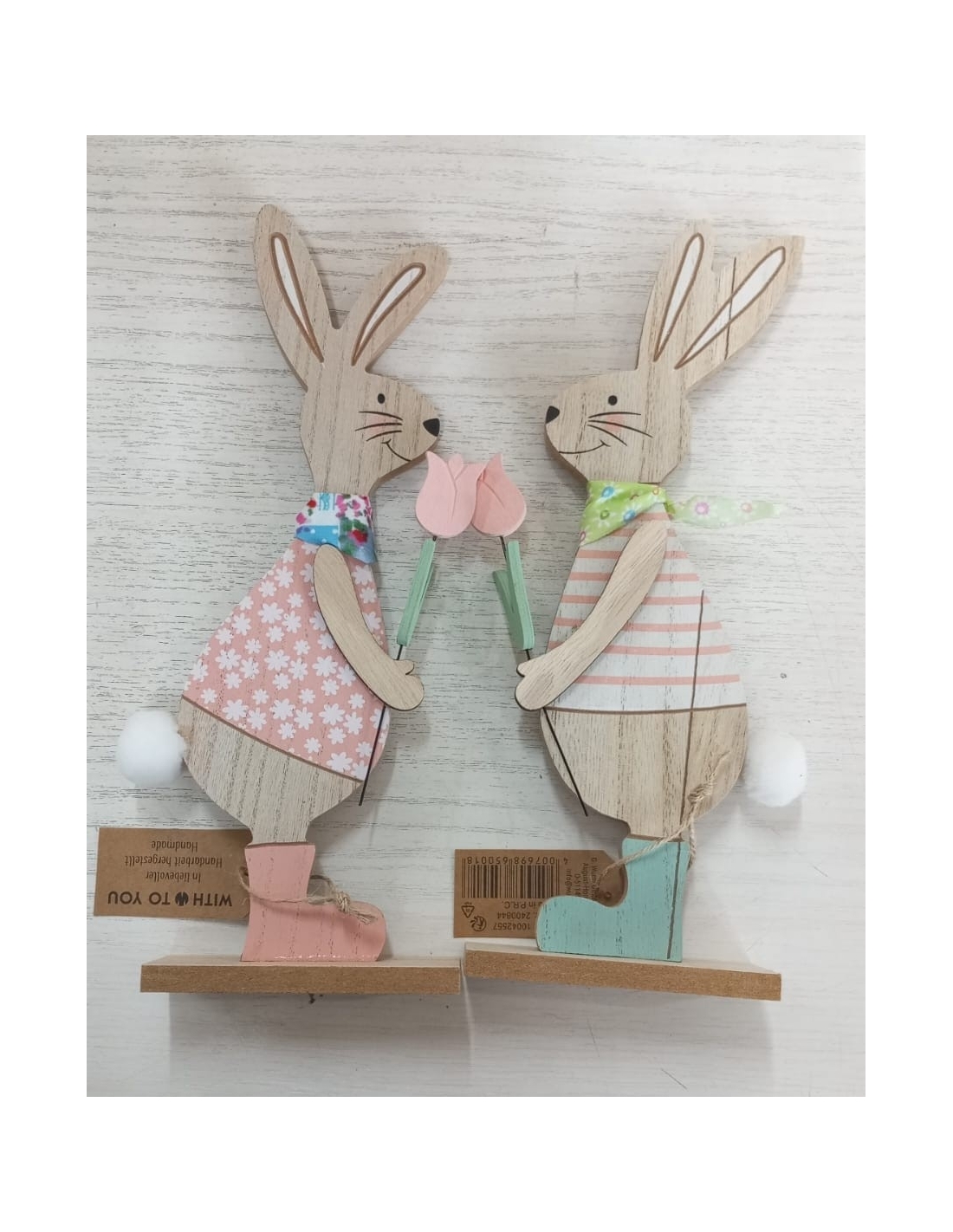 CONEJO MADERA ROSA CON TULIPAN 11X30X4 CM