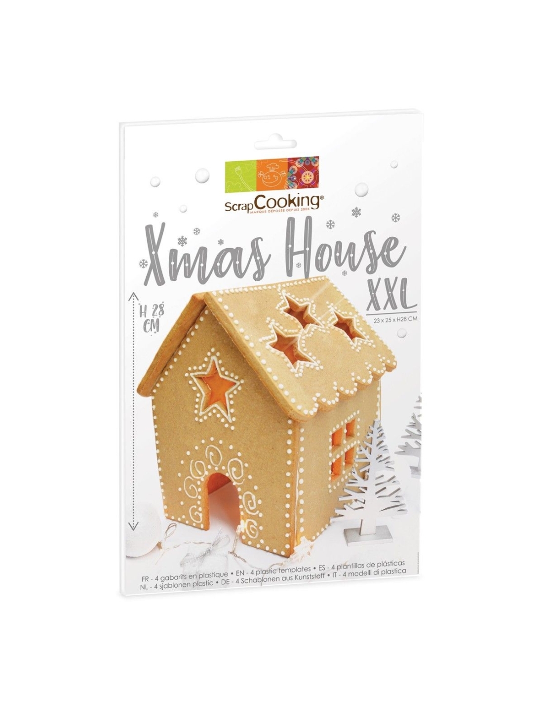 Este kit de Navidad de Scrapcooking contiene plantillas de plástico para hacer y decorar tu propia casa de galletas de Navidad.Material: Plástico PET de grado alimenticio.Tamaño casa de galletas: 23 x 25 x 28 cm.Instrucciones de limpieza: Lavar en agua tibia y secar antes de usar por primera vez, y luego después de cada uso.