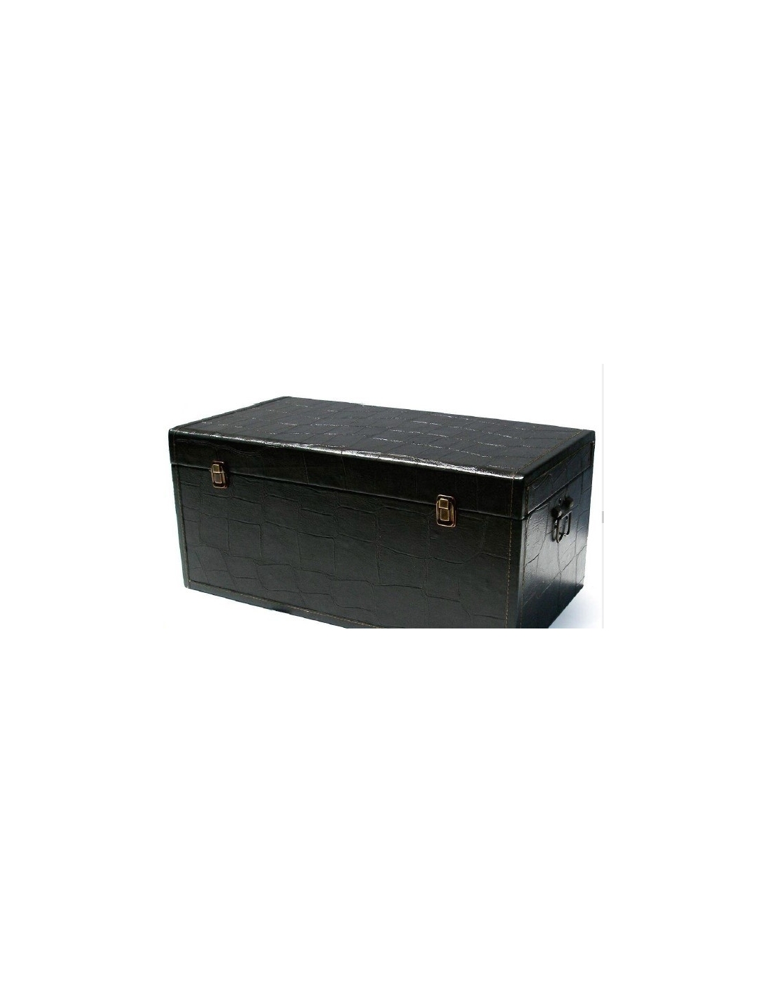 Baúl de grandes dimensiones de color marrón oscuro, doble cierre y asas metálicas en los laterales. Forrada en su interior. Medidas 60x29x36