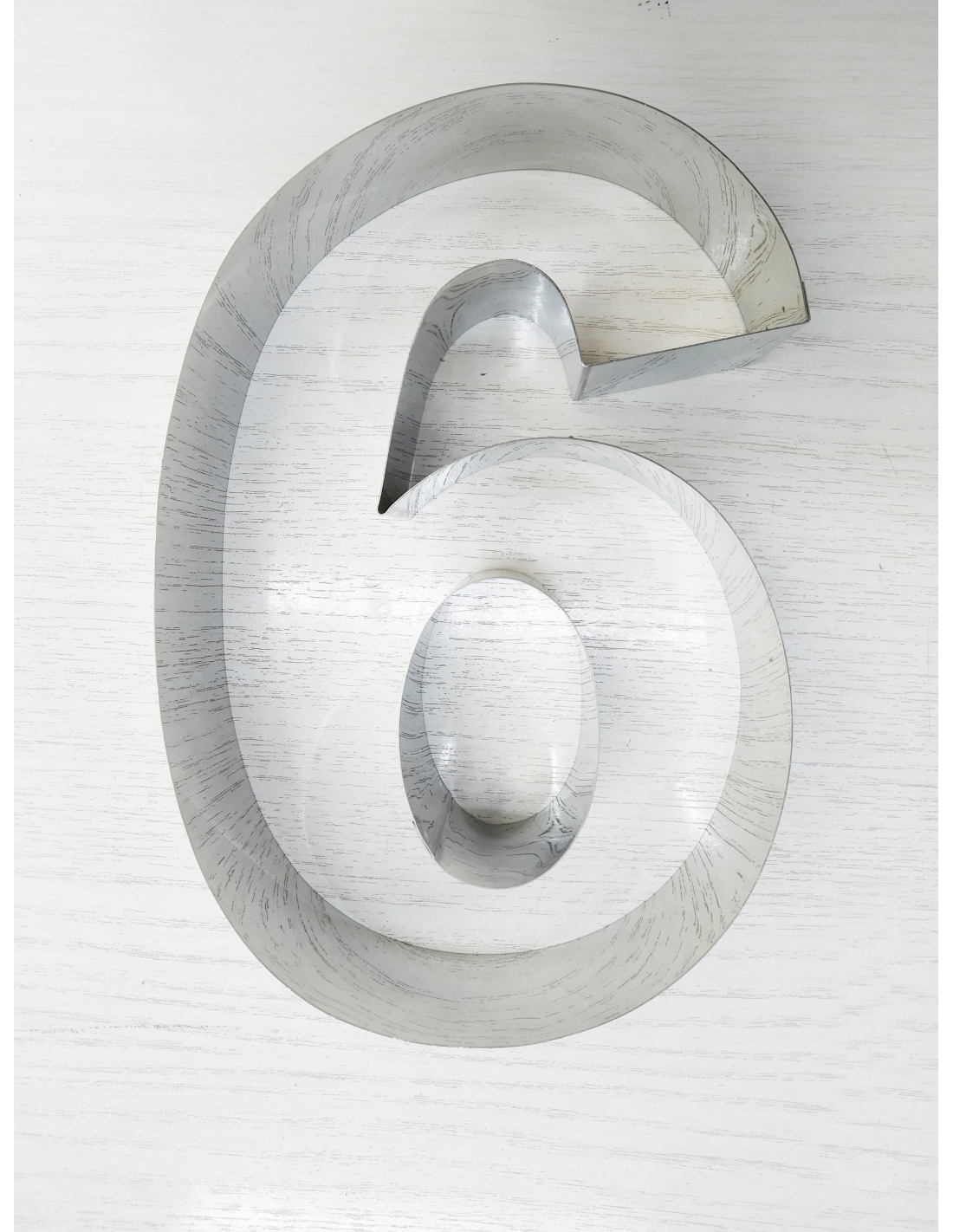 Molde cortador grande de acero inoxidable, para elaborar pasteles con forma de número 6Es ideal para cortar planchas de hojaldre y otras masas, así como para semifríos y para hornear masas densas.Está fabricado en acero inoxidable 18/10 de excelente calidad.