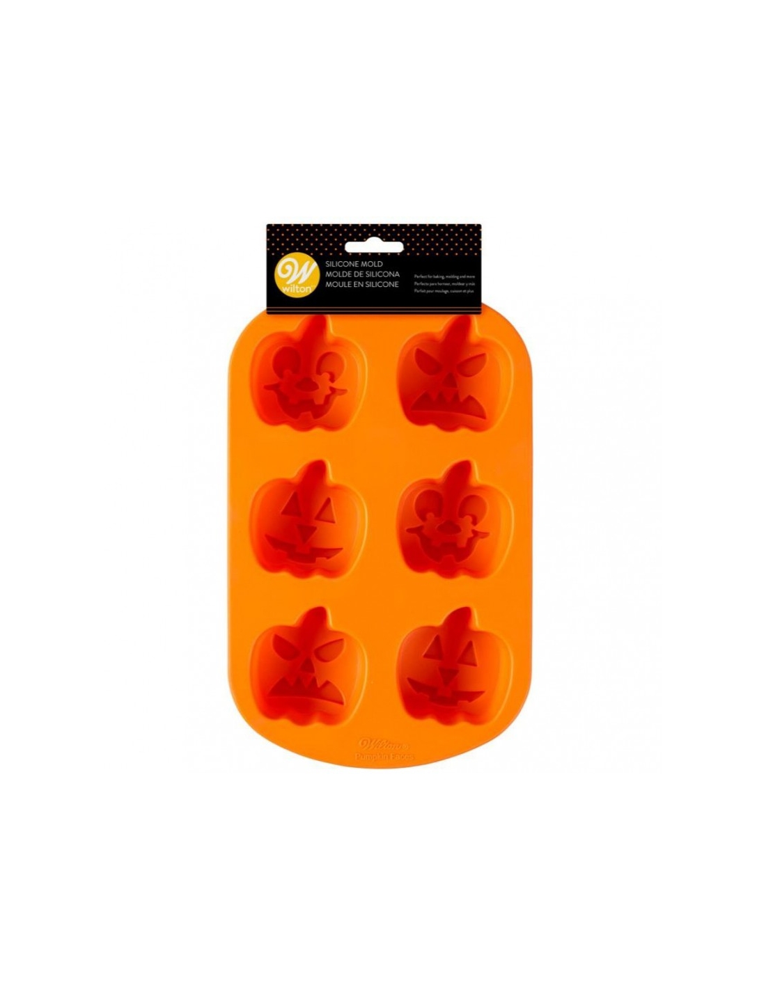 Molde de silicona 6 cavidades Wilton, con 3 divertidos y originales diseños de calabazas para Halloween.