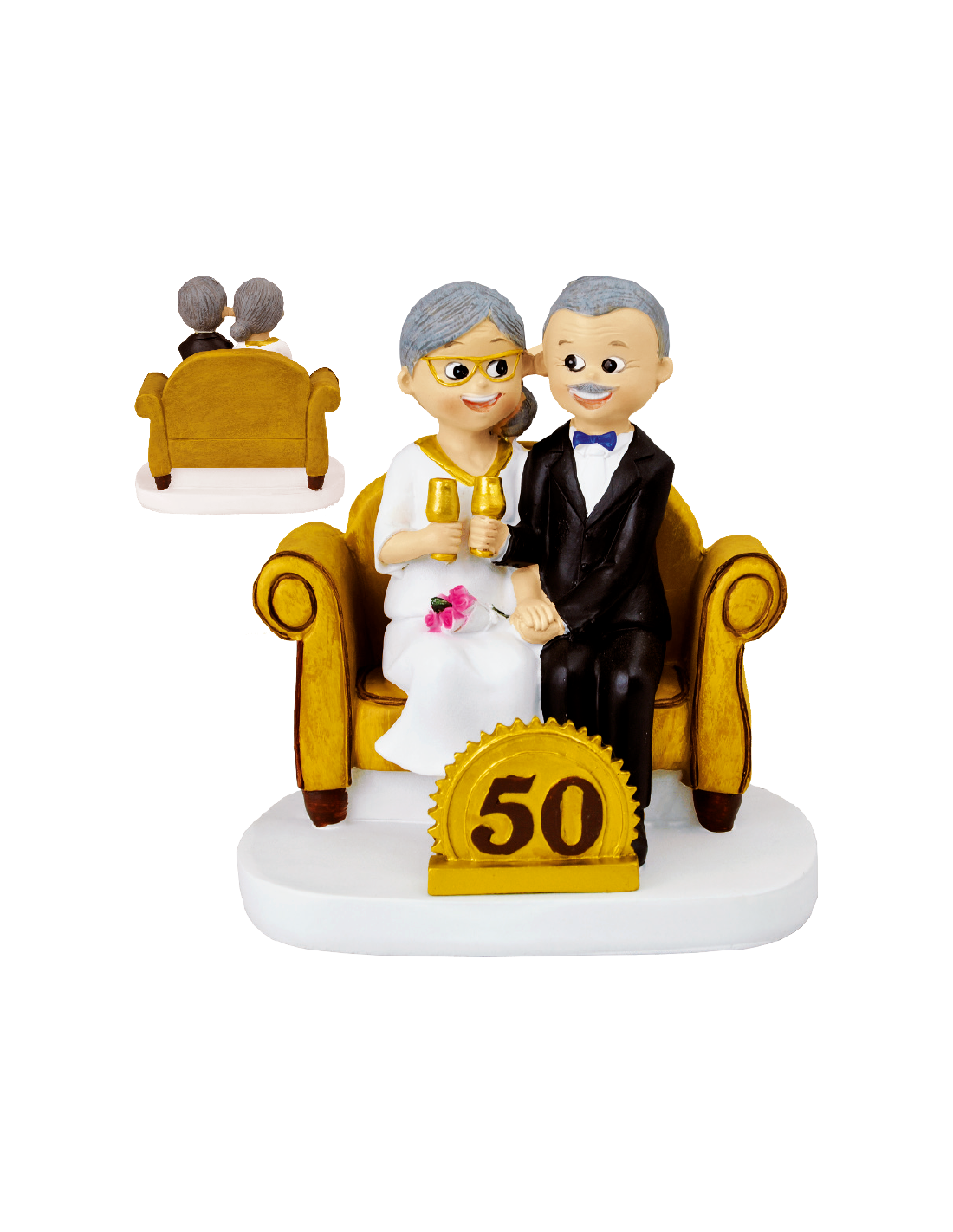 PAREJA NOVIOS 50 AÑOS SOFA Y COPAS DORADAS NO0119