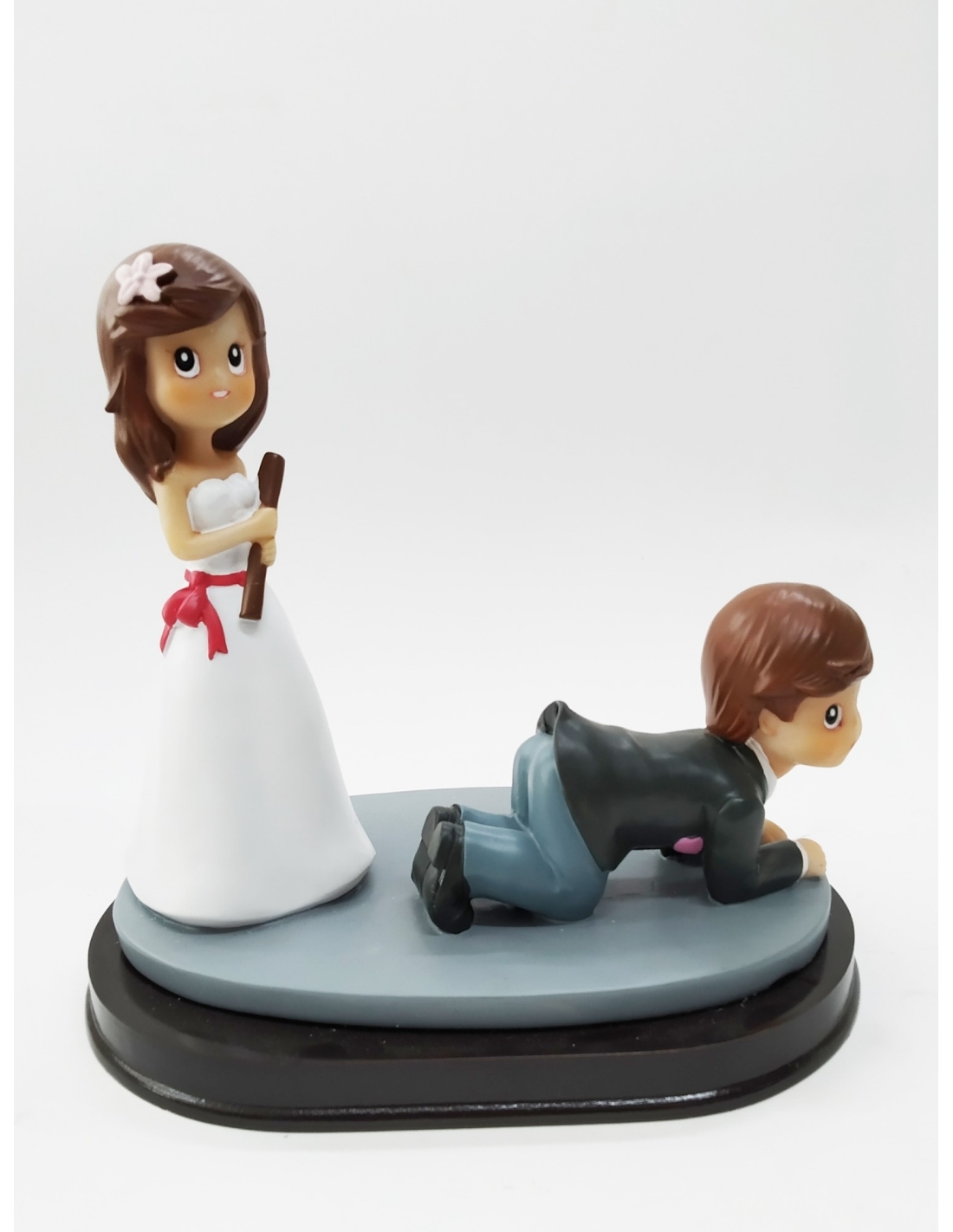 PAREJA NOVIOS AGACHADO Y PORRA EN LA MANO