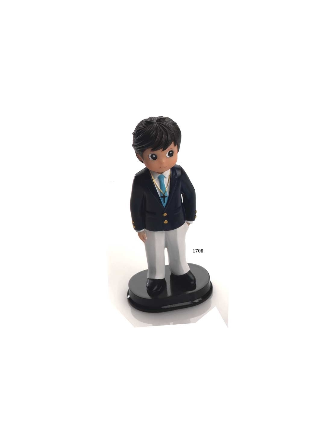 Bonito niño de comunion con chaqueta azul y pantalón blanco, corbata azul17 cm