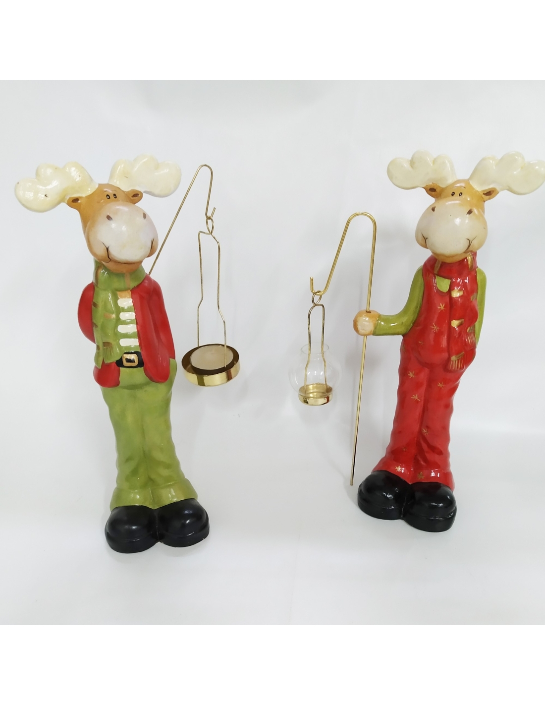 Preciosa figura decorativa en ciervo navideño. Dos modelos disponibles uno con un farolillo y el otro con una vela. Alto 29 cmESPECIFICAR MODELO EN EL PEDIDO, DE NO SER ASÍ SE ELEGIRÁ UNO ALEATORIO !!!!
