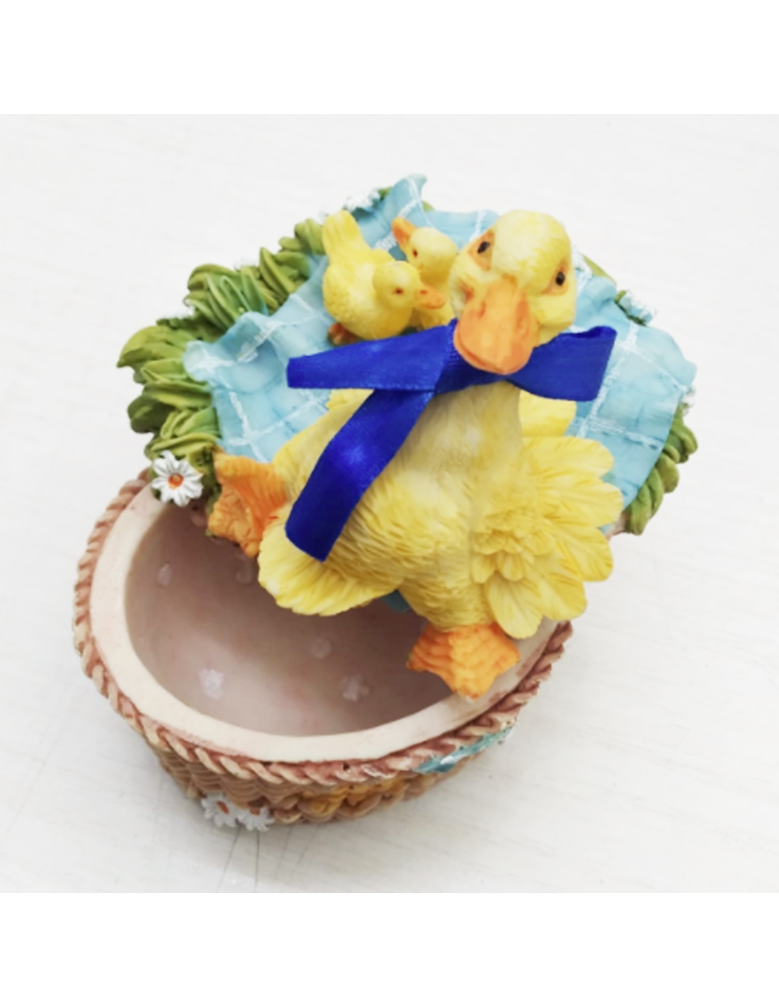 JOYERO CESTA CON PATO LAZO AZUL CERAMICA RESINA P/1U.