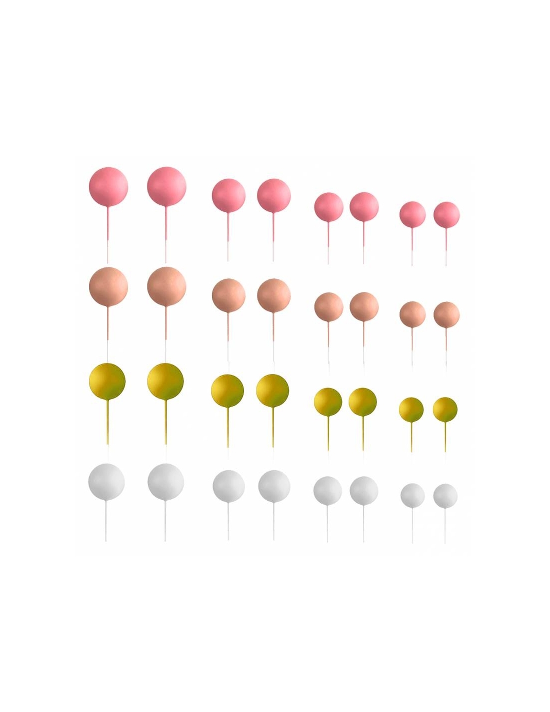 Set de 32 piezas de esferas de espuma para decorar tus tartas y eventos.Están compuestas de espuma (foam) y alambre.Los tamaños de estas bolas son:-8 bolas de 2 cm. (2 azules oscuro, 2 azul claro, 2 blancos y 2 Oro).-8 bolas de 2,5 cm. (2 azules oscuro, 2 azul claro, 2 blancos y 2 Oro).-8 bolas de 3 cm. (2 azules oscuro, 2 azul claro, 2 blancos y 2 Oro).-8 bolas de 4 cm. (2 azules oscuro, 2 azul claro, 2 blancos y 2 Oro).Esta decoración es de fácil montaje y pueden pincharse de forma directa en sus elaboraciones.A tener en cuenta: Producto hecho con materiales desechables y no comestibles siendo solo para uso decorativo. No deben ser consumidas ni usadas en el horno o microondas.