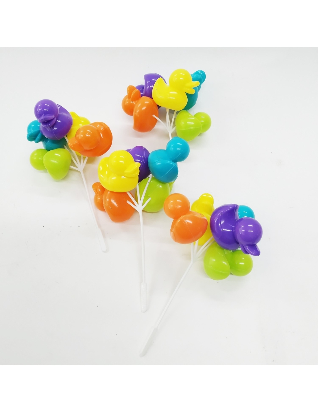 Globo de plástico con forma de patos de colores. Pack de 4 unidades
