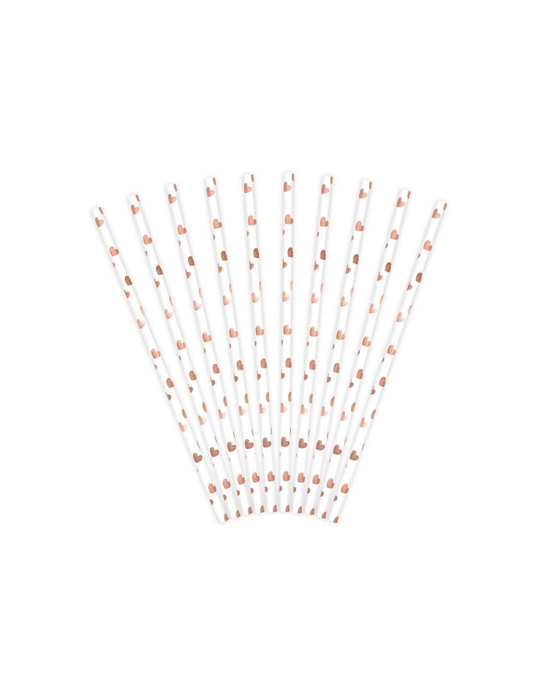 Cañas de papel con motivos de corazones en rosa y oro paquete 10 undiades