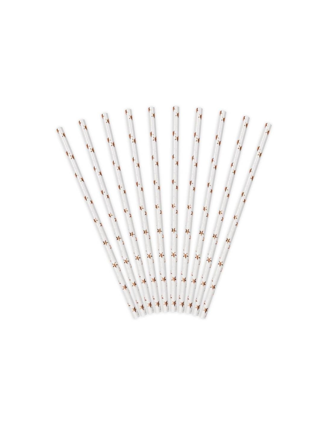 Cañas de papel con decoración de estrellas oro y rosapaquete de 10 unidades