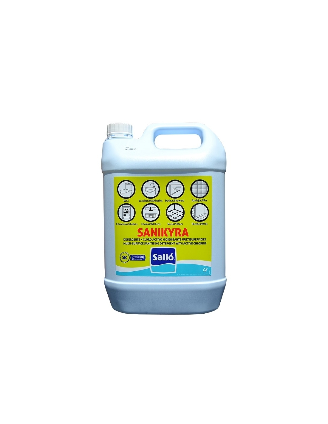Detergente + cloro activo + fragancia paa la limpieza e higienización de multisuperficies lavables estables al cloro. Limpia, desengrasa y blanquea profundamente.