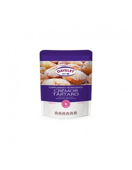 El Crémor Tártaro Dayalet se usa en diversas aplicaciones por sus propiedades para reblandecer el azúcar y en jarabes evita cristalizaciones. También se usa para montar mejor las claras y en las yemas cocidas para mantener su color más natural._ Puede sustituir el zumo de limón en sorbetes y granizados, tambiénse emplea como gasificante de poca fuerza en impulsores y levaduras. Se usa en las siguientes aplicaciones: claras, merengues, yemas, turrones, mazapanes, galletas, jarabes, sorbetes, granizados, etc. Éste producto es sin gluten, sin huevo, sin fructosa, sin azúcar, sin frutos secos, sin soja, sin lactosa, sin sal y sin colesterol.Envase: bolsa de 150 gr.