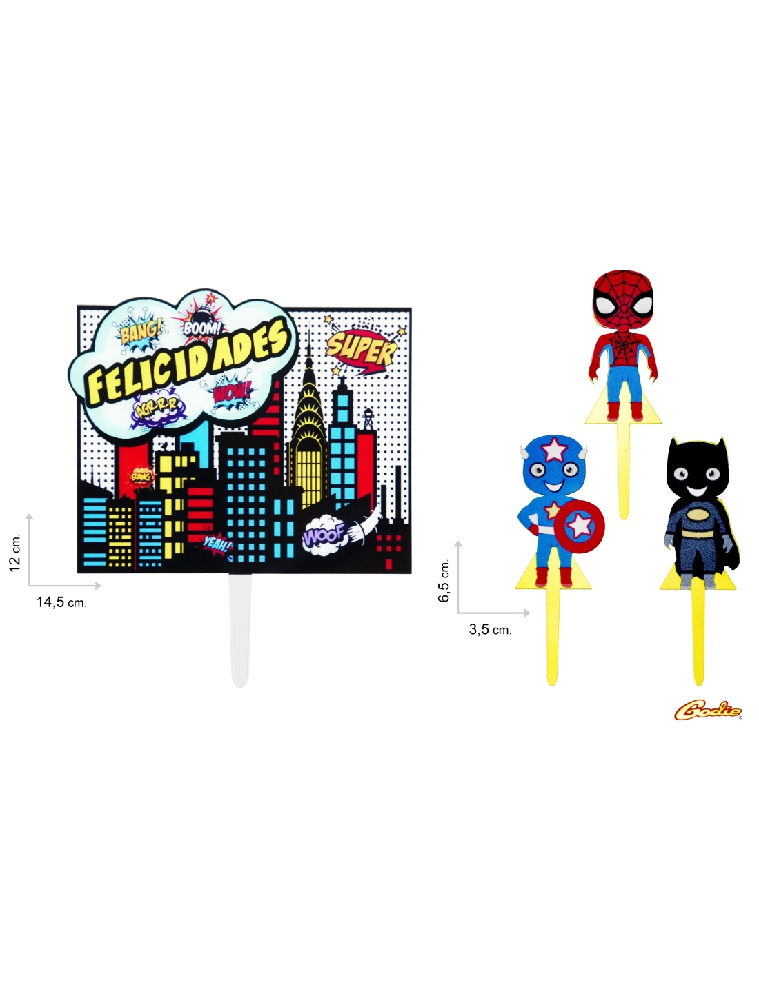 TOPPER CUMPLEAÑOS SUPERHÉROES 2 U