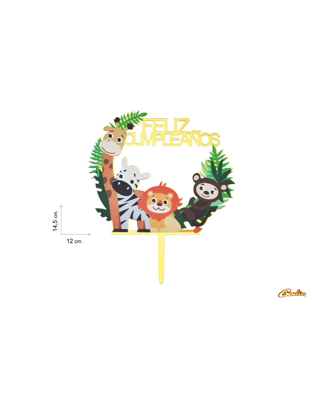 TOPPER FELIZ CUMPLEAÑOS ANIMALES SELVA