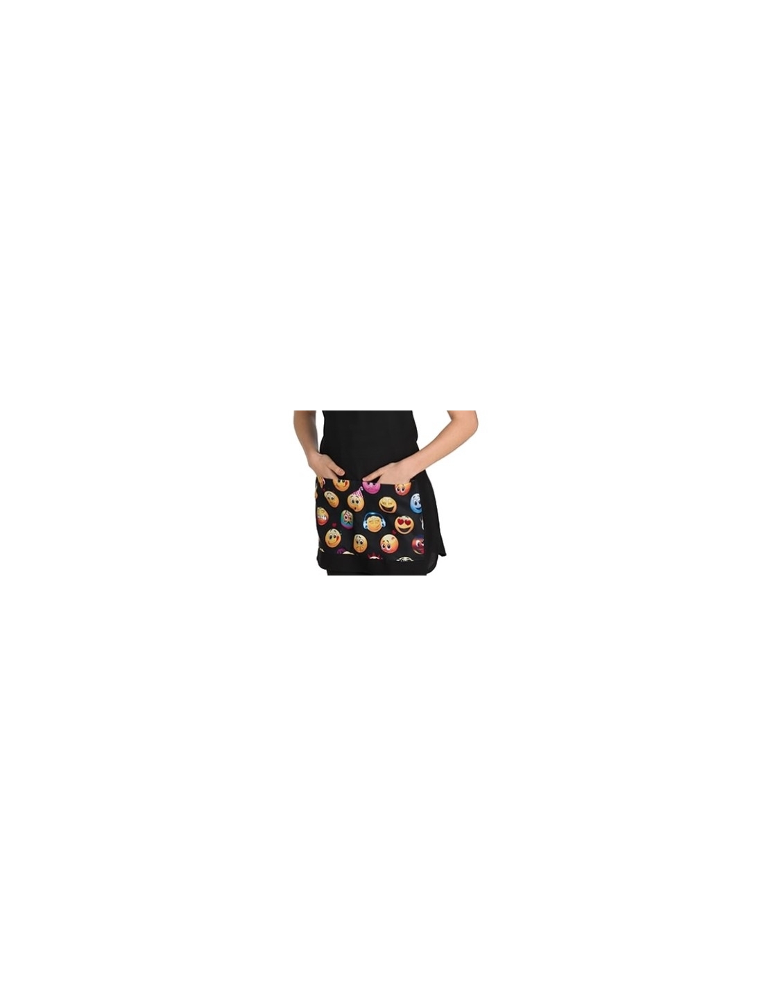 Estola básica de color negro con estampado emoticonos en el bolsillo. Su composición es 100% Poliéster de alta calidad. Es una prenda cómoda, fresca, alegre, colorida y moderna para tu negocio, apto para cualquier tipo de negocio o comercio. Talla única, ajustable, abarca desde una talla SP a una talla XL. Se puede anudar por los lados o de atrás a delante y delante atrás como un mandil.