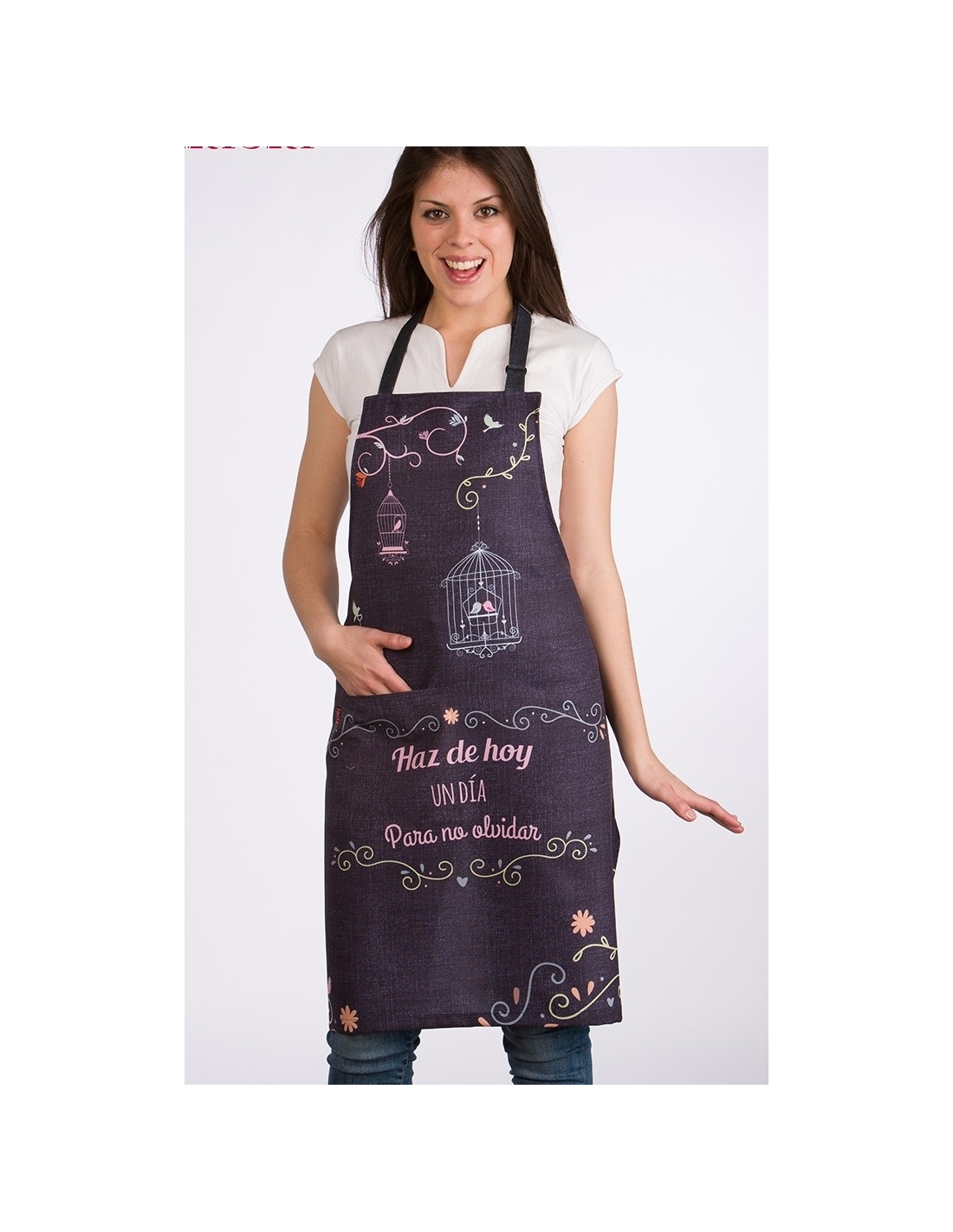Delantal mediano con peto y bolsillo “ Pajaros jeans “Delantal estampado mediano con peto envolvente y bolsillo . tira cuello graduable con hebilla . Se ajusta con cintas que se anudan por la espalda.COMPOSICIÓN: 100º/? POLIESTER STRECH