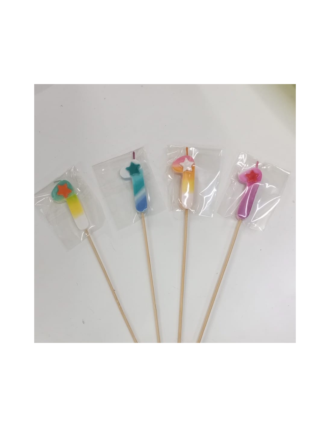 Velas de colores con brocheta de palillo para adornar tus creaciones